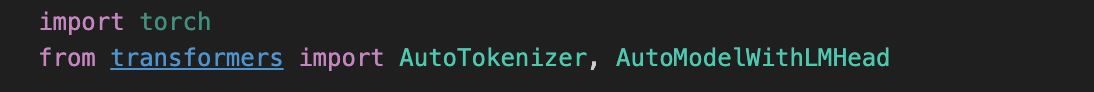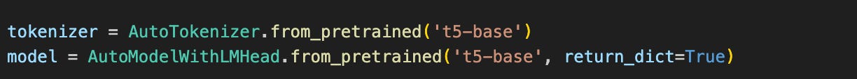 First, we need to import the API. We can do this by calling in the “transformers” library and importing the “AutoTokenizer” model which includes the pre-trained T5 base.